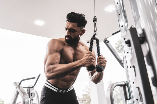Now bring the handle all the way down till your arms are completely outstretched, while keeping your elbows fixed to your sides.